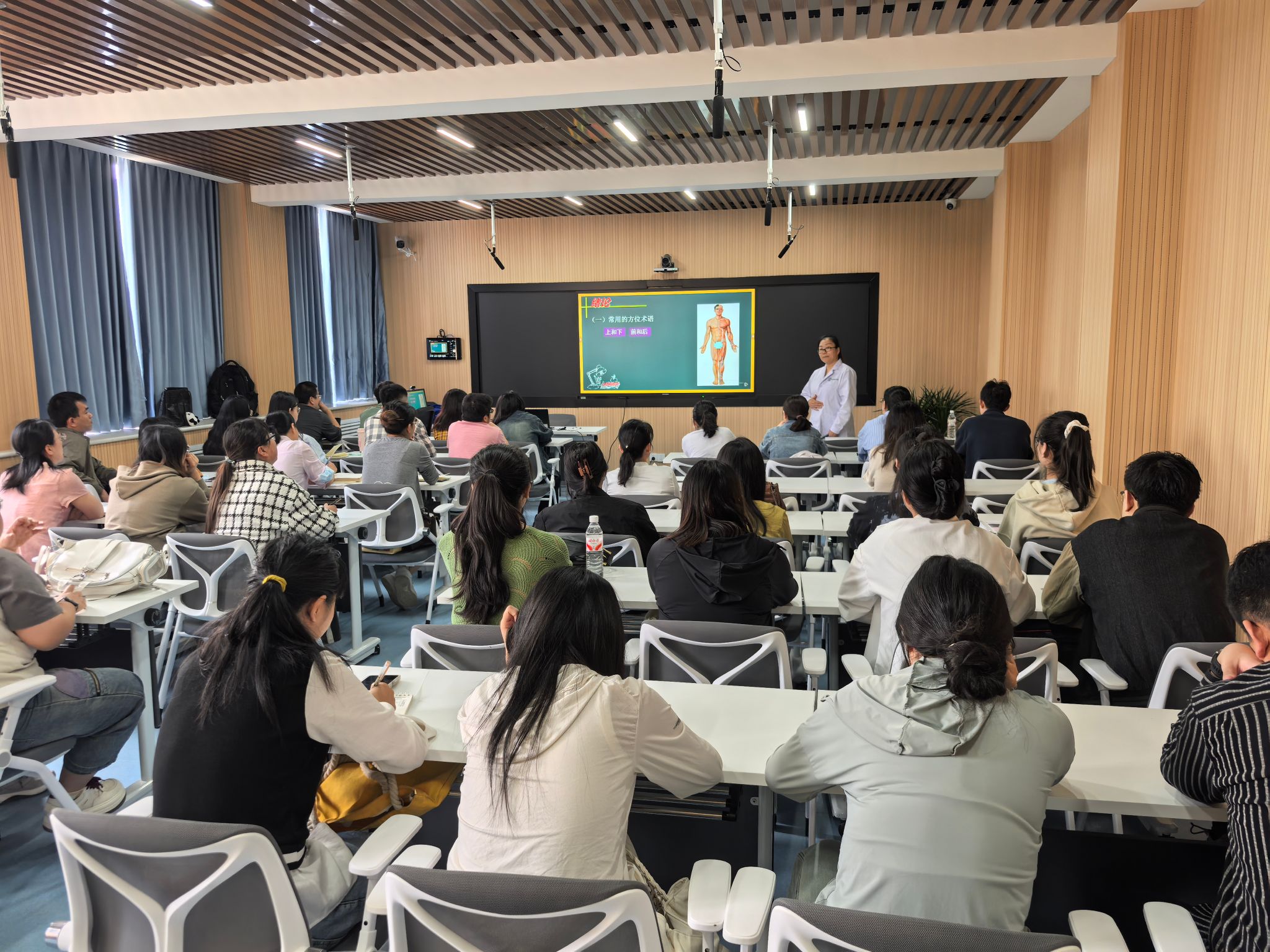 线下面授课教室内,氛围热烈而有序。授课教师以案例为引,通过多媒体课件展开讲解,学生专注聆听,时而低头笔记,时而举手提问,学习氛围浓厚。直播间里,线上课堂同样活跃,学生通过弹幕提问、连麦互动与教师实时交流,共享优质教学资源。来到现场的同学纷纷表示:面对面交流让枯燥的理论变得生动,还能与老师同学建立有效沟通,效率远超自学。