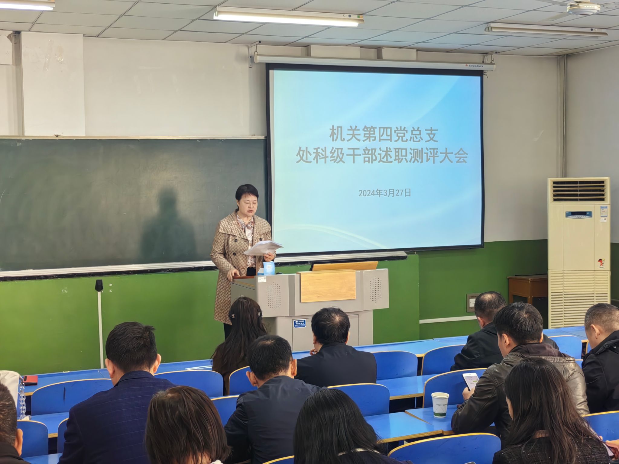 为了全面了解掌握干部履职尽责情况,进一步提质强能,根据西医党发〔2024〕10 号文件《关于开展 2023 年度综合考核工作的通知》相关要求,3月27日上午,机关第四党总支在含光校区综合楼二楼组织召开机关第四党总支及离退休党总支2023年度处科级干部综合考核工作。本次考核工作由机关第四党总支书记靳红樱主持,机关第四党总支全体处科级干部、教职工代表及离退休党总支全体处科级干部、教职工代表共计35人参加了考核测评工作。整个考核工作按照现场述职、集中测评程序开展。