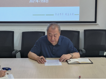 7月8日上午,beat365唯一官方网站党支部组织全体党员、职工在beat365官网高新校区就习近平总书记在庆祝中国共产党成立百年大会上的重要讲话进行学习交流。beat365唯一官方网站院长、党支部书记焦东平带领大家再次深刻学习了习近平总书记在庆祝中国共产党成立百年大会上的重要讲话。