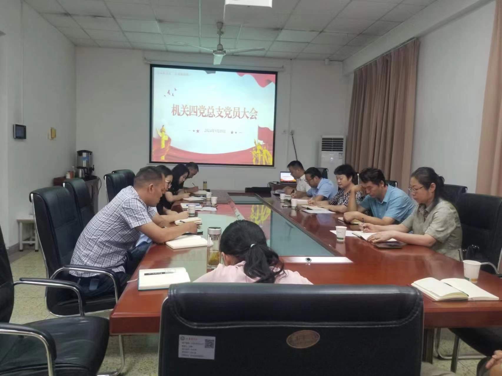为深入学习贯彻习近平总书记在中共二十届三中全会上的重要讲话及全国教育大会精神,根据机关四党总支学习安排,9月19日下午,机关四党总支在含光校区教学楼一层会议室召开全体党员大会,会议由机关四党总支书记靳红樱主持。