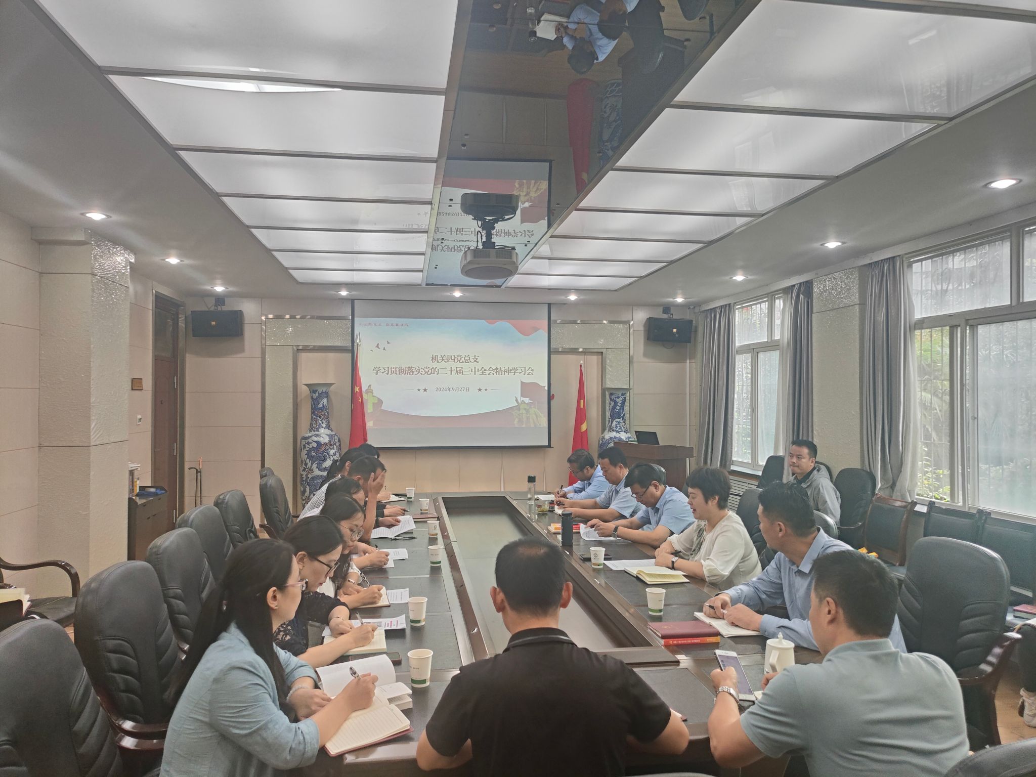 为深入学习宣传贯彻党的二十届三中全会精神,进一步统一机关四党总支全体党员干部的思想和行动,不断提高党员干部履职担当能力,9月27日上午,机关四党总支在高新校区会议室召开全体党员干部学习会,党委副书记姚文柱参加本次学习会,会议由机关四党总支书记靳红樱主持。