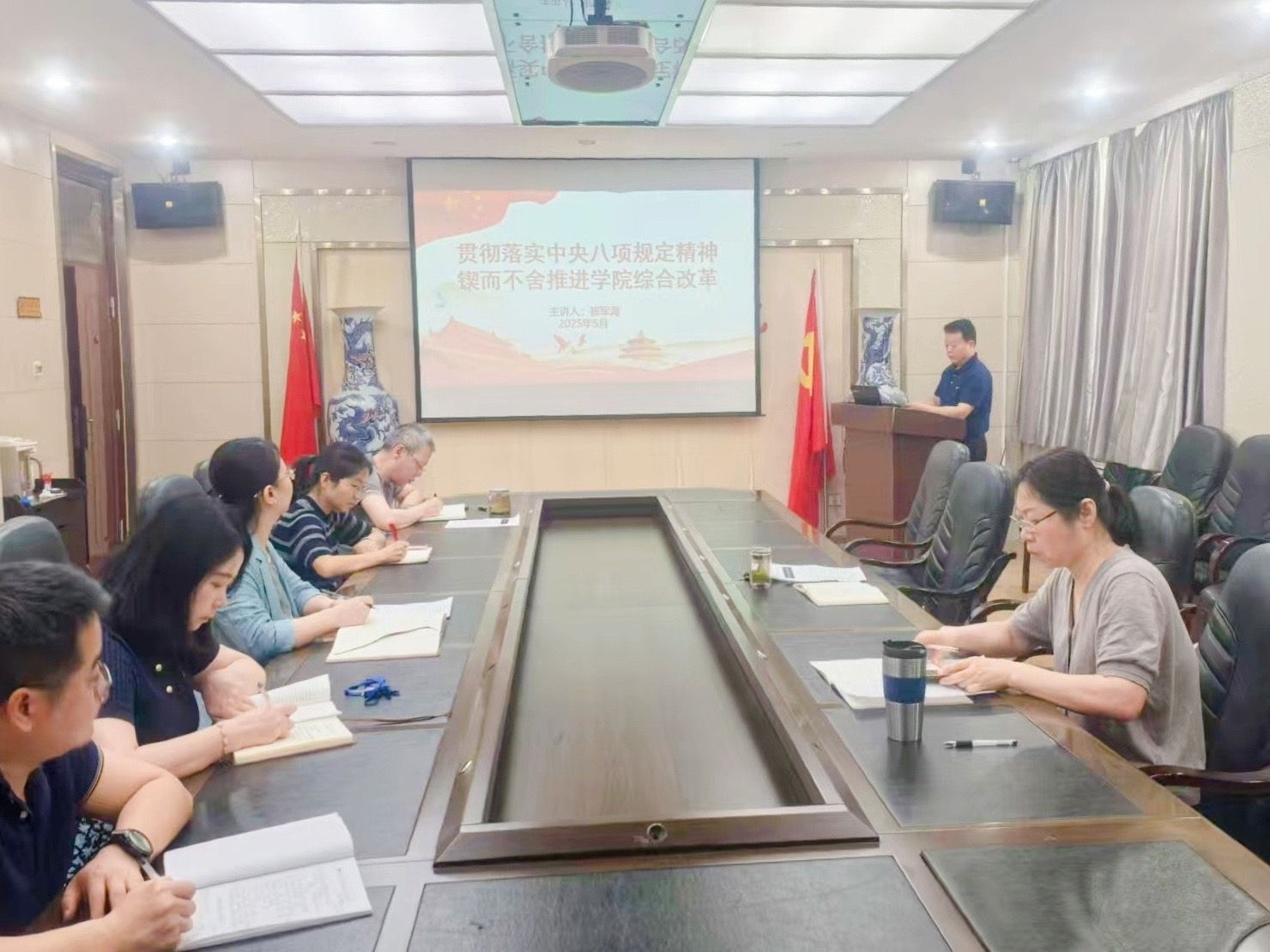 5月23日上午,beat365唯一官方网站党支部在高新校区二楼会议室开展深入贯彻中央八项规定精神学习教育专题学习。会议由党支部书记崔军海主持,全体党员参加会议。